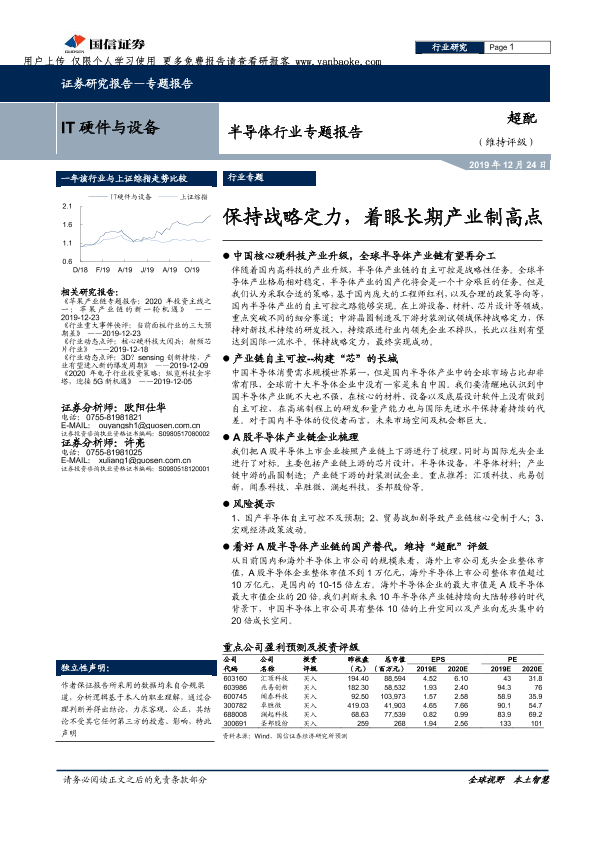 【国信证券】【20191224】半导体行业专题报告:保持战略定力,着眼长期产业制高点-16页