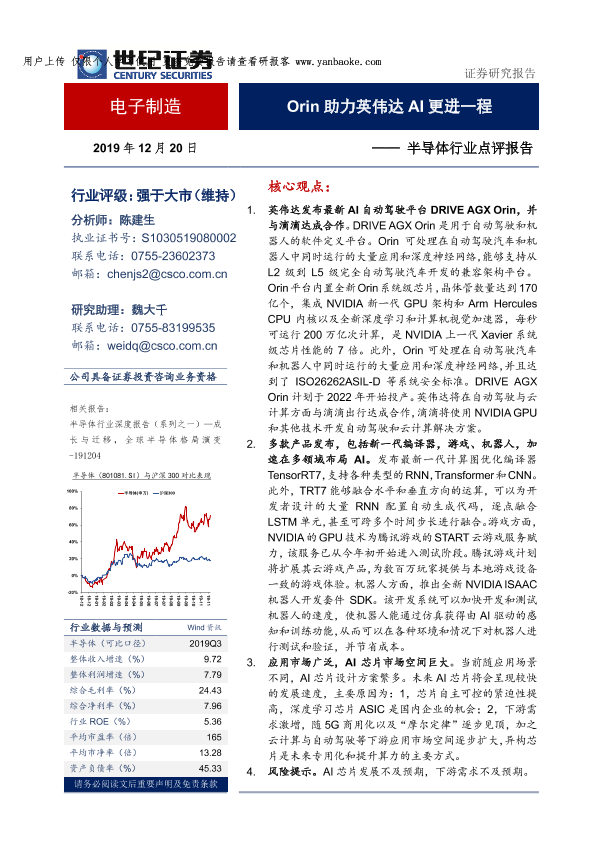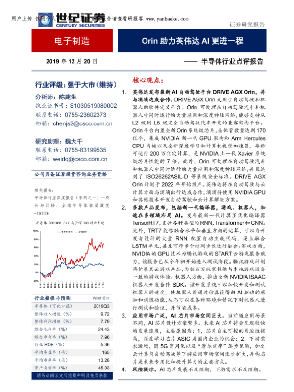 【世纪证券】【20191220】半导体行业点评报告:Orin助力英伟达AI更进一程-10页