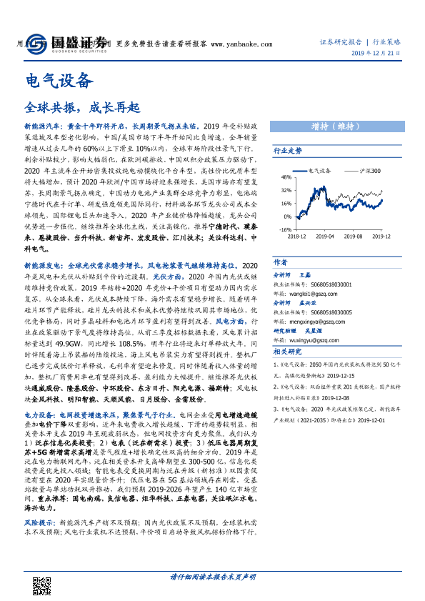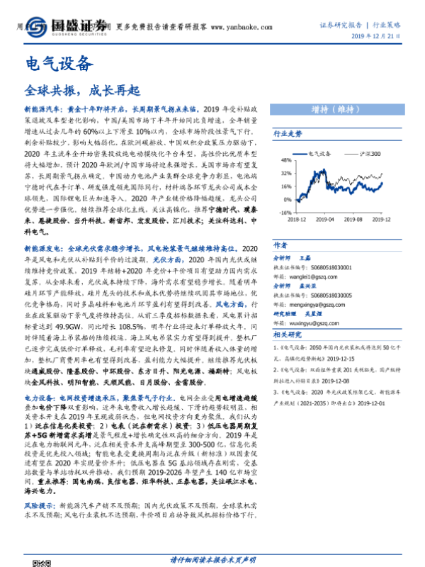 【国盛证券】【20191221】电气设备行业策略:全球共振,成长再起-69页