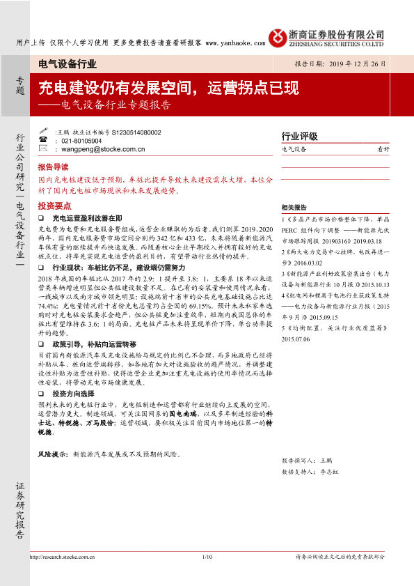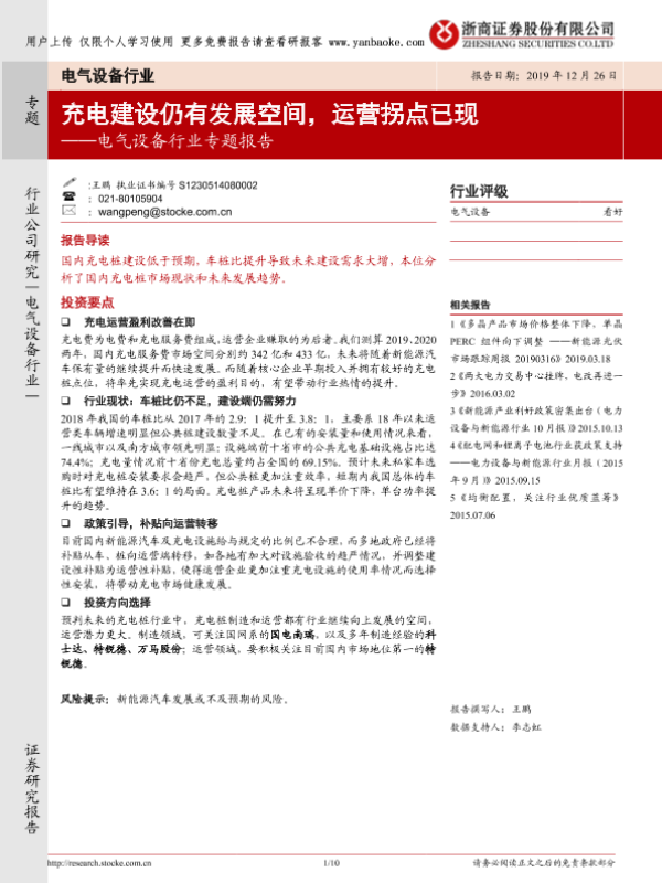 【浙商证券】【20191226】电气设备行业专题:充电建设仍有发展空间,运营拐点已现-10页