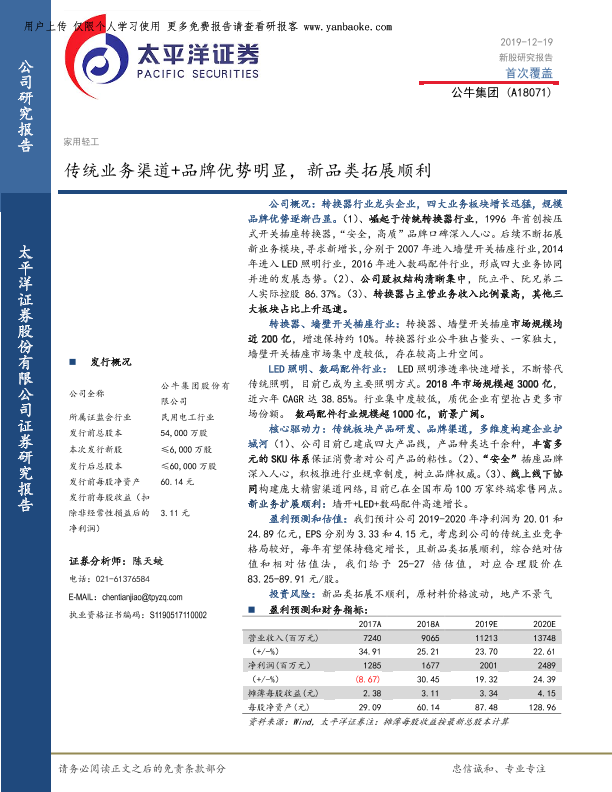 【太平洋证券】【20191219】传统业务渠道+品牌优势明显,新品类拓展顺利-42页