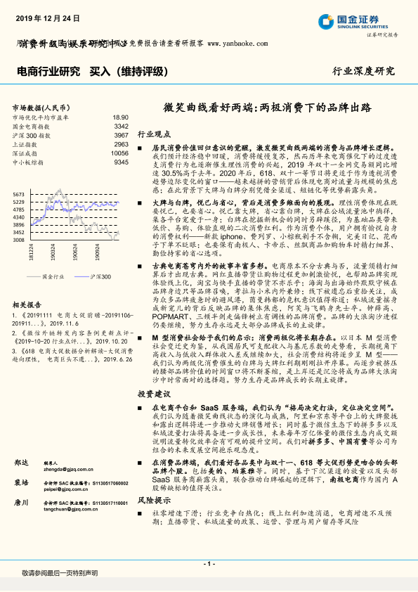 【国金证券】【20191224】电商行业深度研究:微笑曲线看好两端,两极消费下的品牌出路-65页
