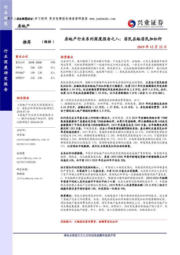 【兴业证券】【20191222】房地产行业系列深度报告之八:居民在给居民加杠杆-22页
