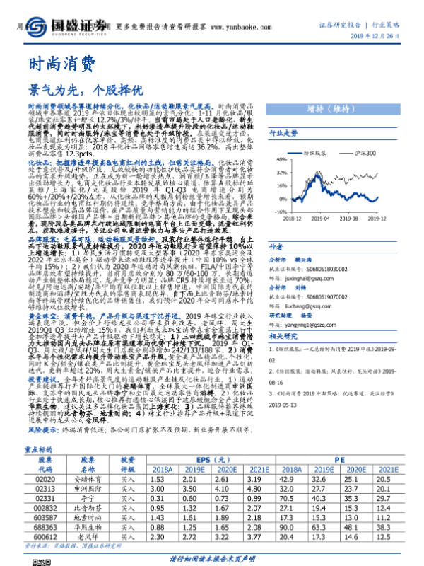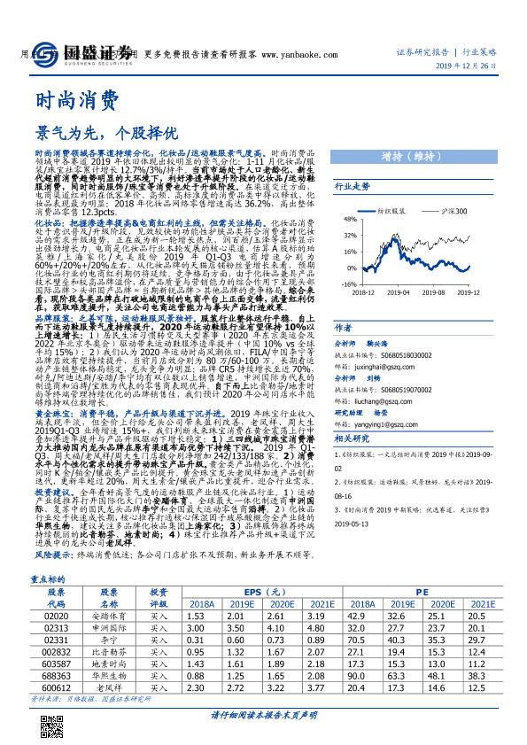 【国盛证券】【20191226】纺织服装行业:时尚消费,景气为先,个股择优-49页