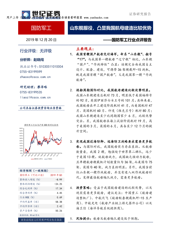 【世纪证券】【20191220】国防军工行业点评报告:山东舰服役,凸显我国航母建造比较优势-10页