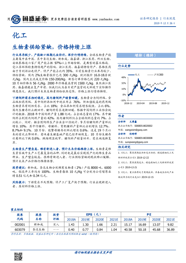 【国盛证券】【20191226】化工行业深度:生物素供给紧缺,价格持续上涨-12页