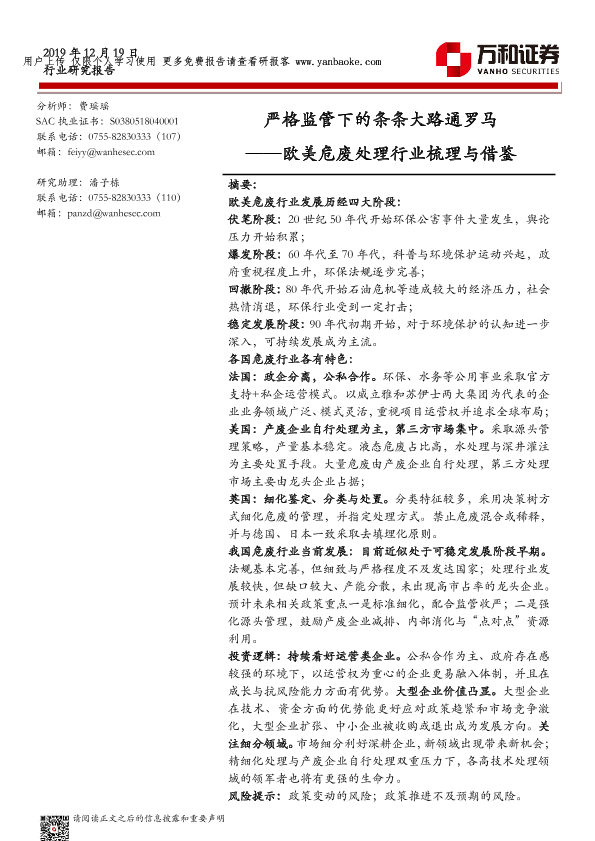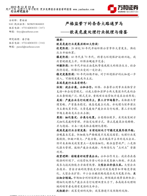 【万和证券】【20191219】环保行业:欧美危废处理行业梳理与借鉴,严格监管下的条条大路通罗马-21页