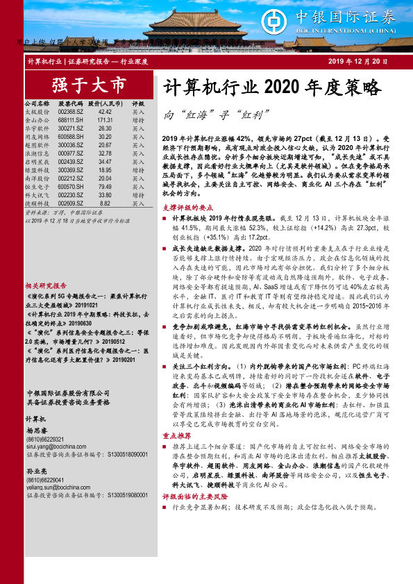 【中银证券】【20191220】计算机行业2020年度策略:向“红海”寻“红利”-47页
