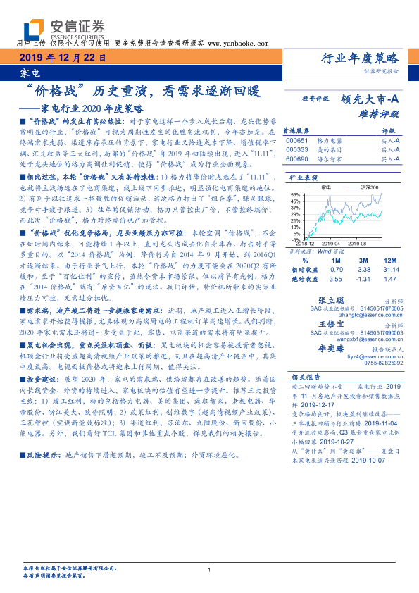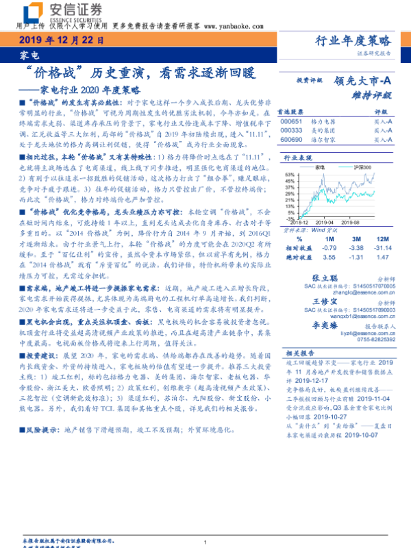 【安信证券】【20191222】家电行业2020年度策略:“价格战”历史重演,看需求逐渐回暖-25页