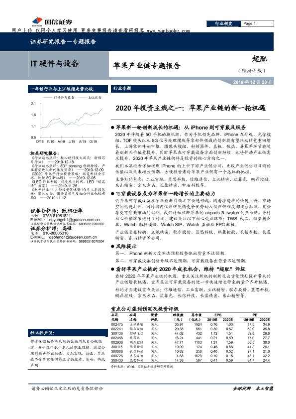 【国信证券】【20191223】IT硬件与设备行业苹果产业链专题报告:2020年投资主线之一,苹果产业链的新一轮机遇-13页