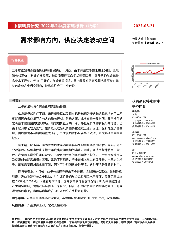 【中信期货】【20220321】2022年2季度策略报告(纸浆):需求影响方向,供应决定波动空间-16页