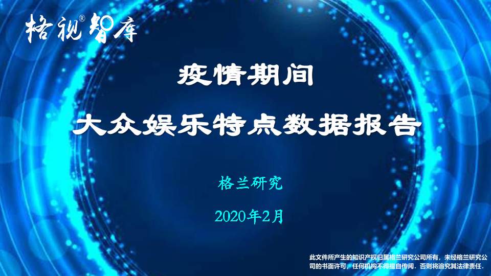 【格兰研究】【202002】疫情期间大众娱乐特点数据报告-47页