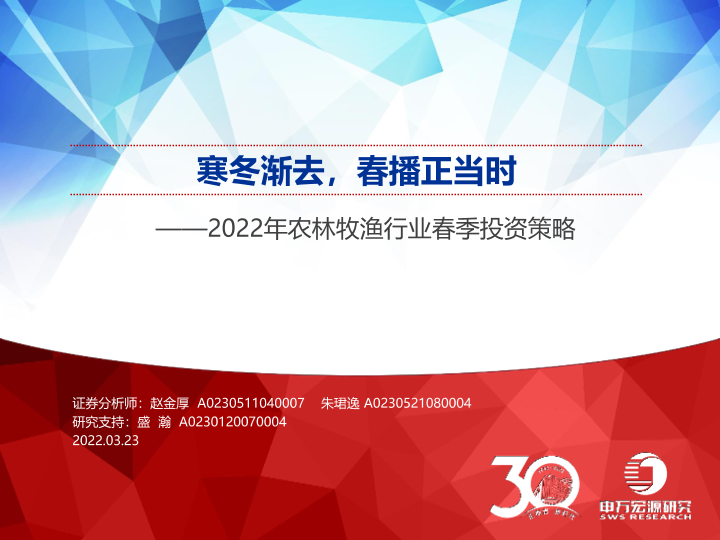 【申万宏源】【20220323】2022年农林牧渔行业春季投资策略:寒冬渐去,春播正当时-35页