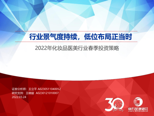 【申万宏源】【20220324】2022年化妆品医美行业春季投资策略:行业景气度持续,低位布局正当时-49页