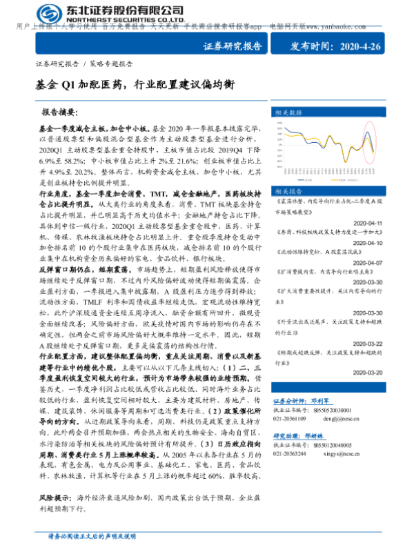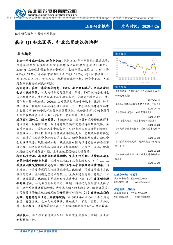 【东北证券】【20200426】策略专题报告:基金Q1加配医药,行业配臵建议偏均衡-17页