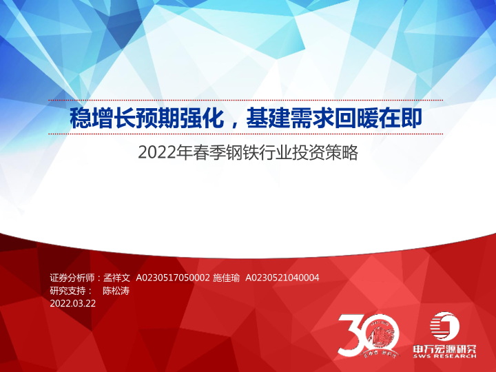 【申万宏源】【20220322】2022年春季钢铁行业投资策略:稳增长预期强化,基建需求回暖在即-39页