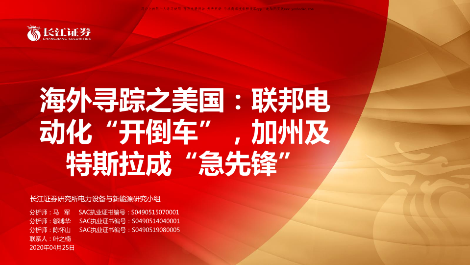 【长江证券】【20200425】海外寻踪之美国:联邦电动化“开倒车”,加州及特斯拉成“急先锋”-31页