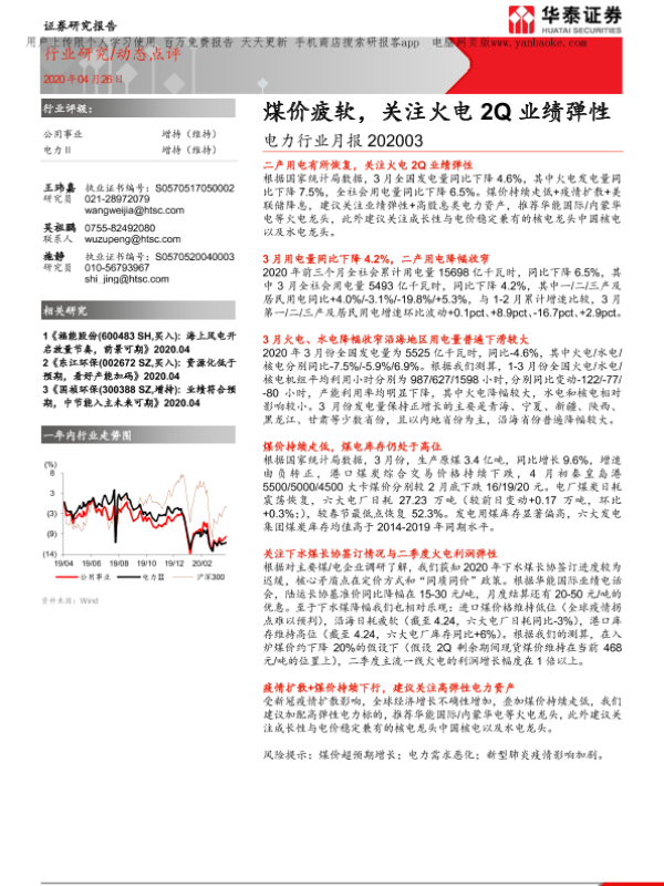 【华泰证券】【20200426】电力行业月报:煤价疲软,关注火电2Q业绩弹性-12页