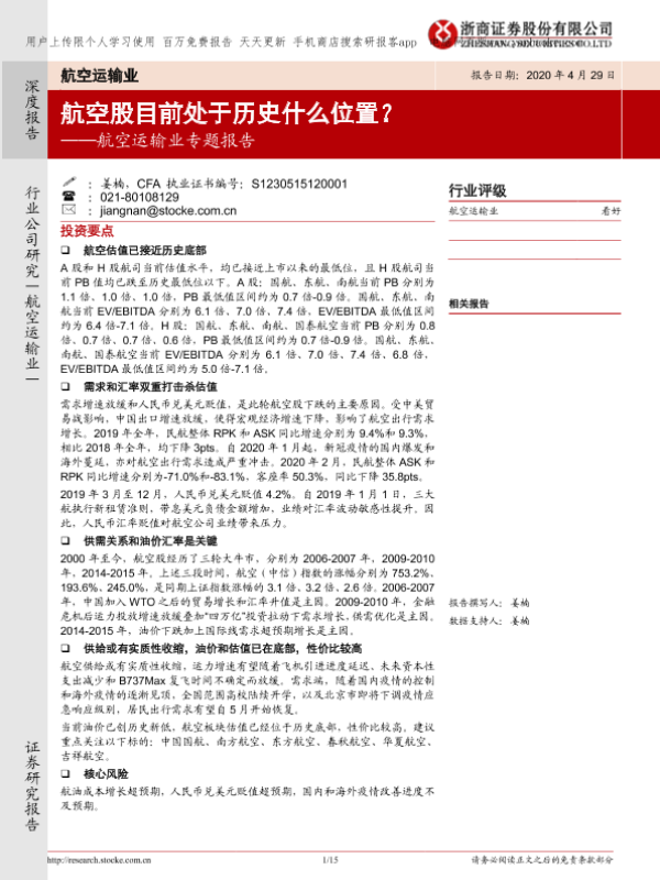 【浙商证券】【20200429】航空运输行业专题报告:航空股目前处于历史什么位置?-15页