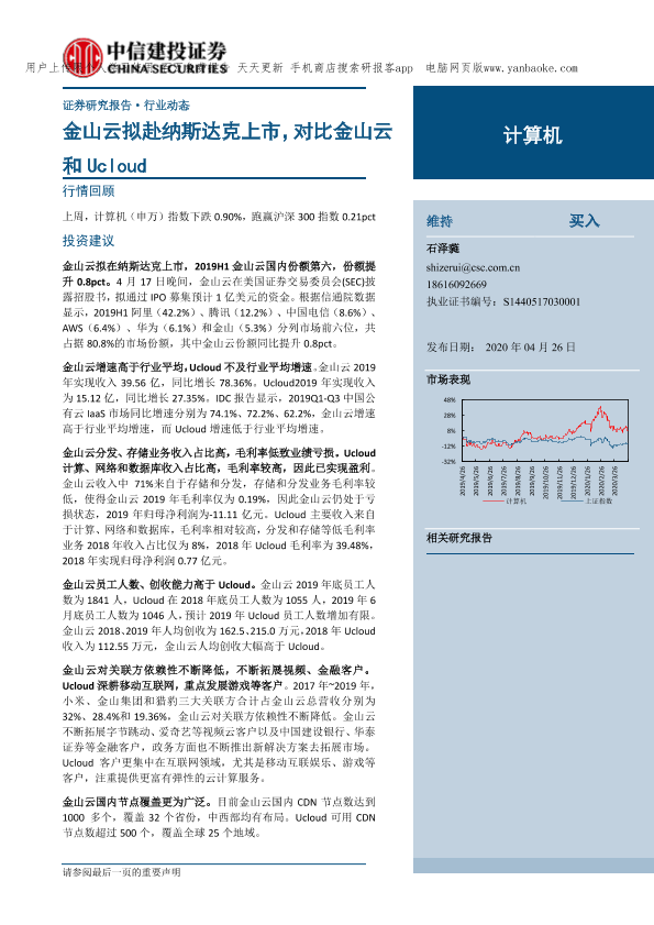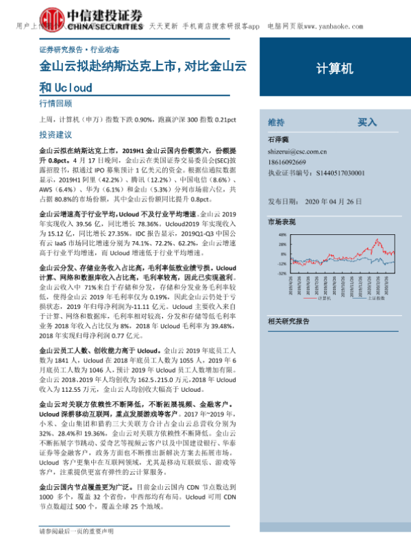 【中信建投证券】【20200426】计算机行业动态:金山云拟赴纳斯达克上市,对比金山云和Ucloud-25页