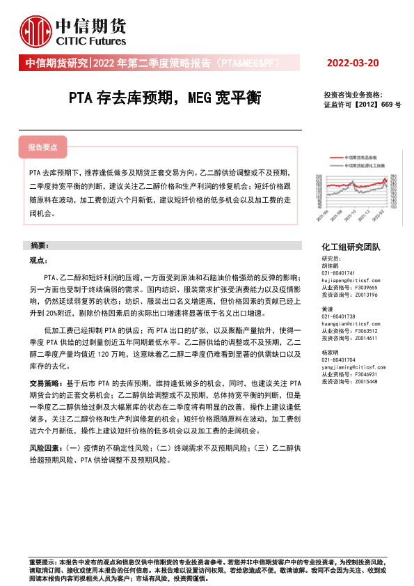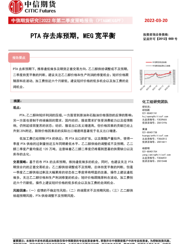 【中信期货】【20220320】2022年第二季度策略报告(PTA&MEG&PF):PTA存去库预期,MEG宽平衡-17页