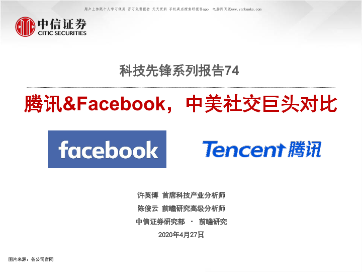 【中信证券】【20200427】科技行业先锋系列报告74:腾讯&Facebook,中美社交巨头对比-46页