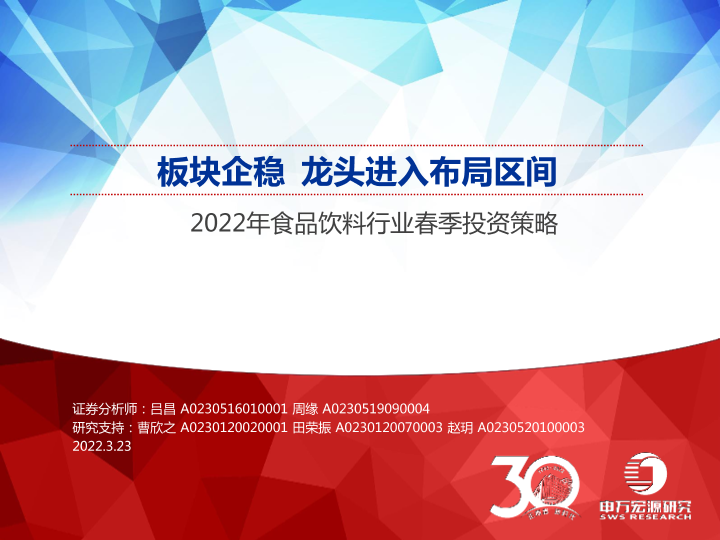【申万宏源】【20220323】2022年食品饮料行业春季投资策略:板块企稳,龙头进入布局区间-31页