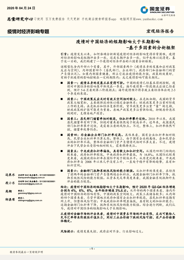 【国金证券】【20200424】疫情对经济影响专题:基于多因素的分析框架,疫情对中国经济的短期影响大于长期影响-23页