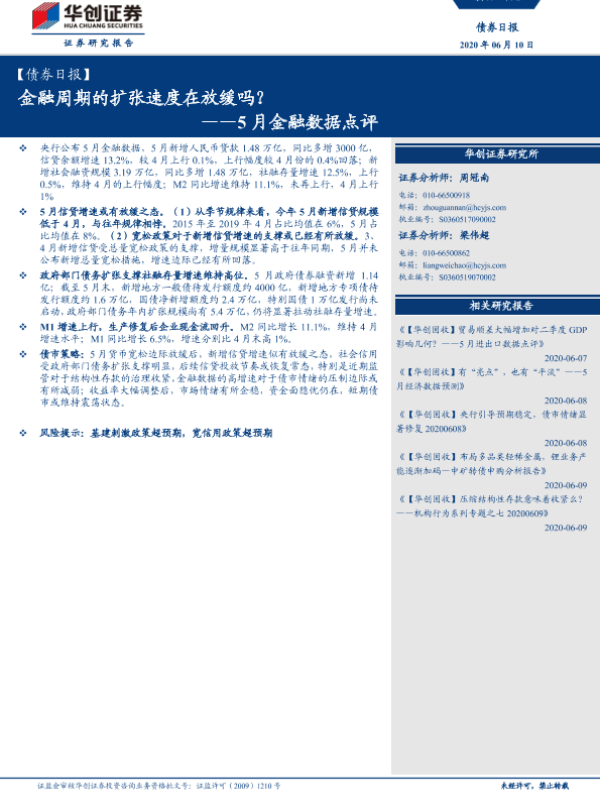 【华创证券】【20200610】5月金融数据点评:金融周期的扩张速度在放缓吗?-16页