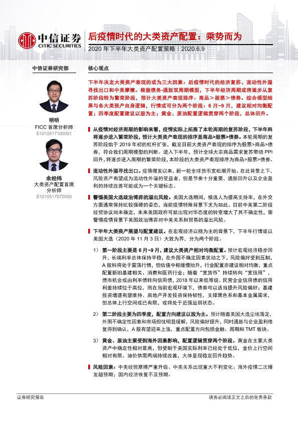 【中信证券】【20200609】2020年下半年大类资产配置策略:后疫情时代的大类资产配置,乘势而为-26页