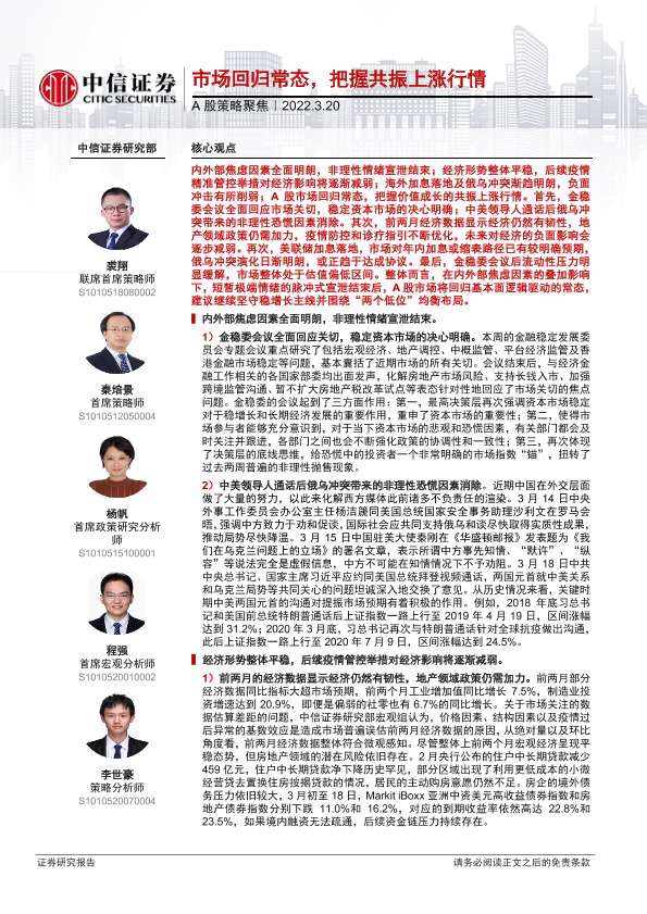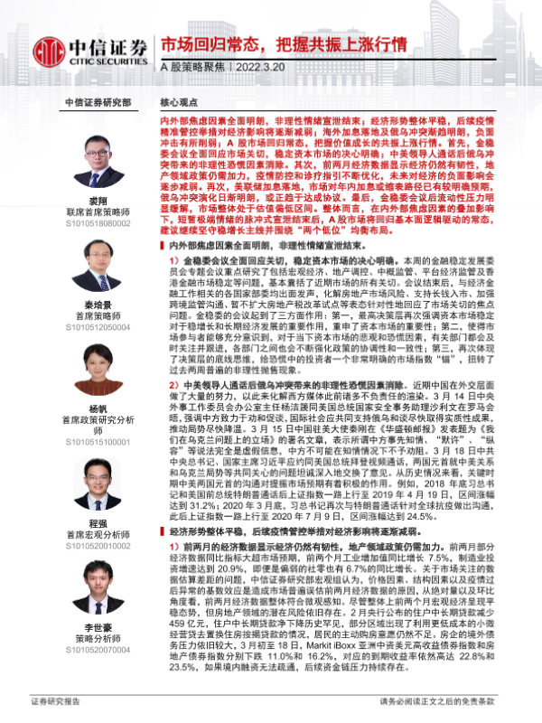 【中信证券】【20220320】A股策略聚焦:市场回归常态,把握共振上涨行情-24页