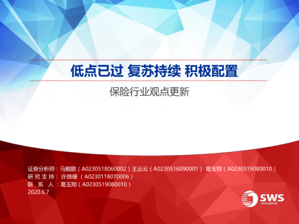 【申万宏源】【20200607】保险行业观点更新:低点已过,复苏持续,积极配置-32页