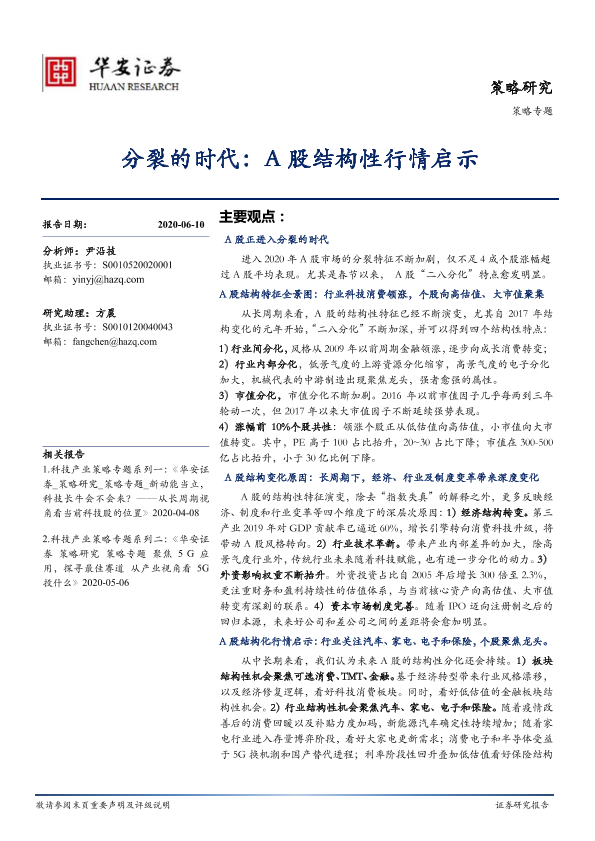【华安证券】【20200610】策略专题:分裂的时代,A股结构性行情启示-23页