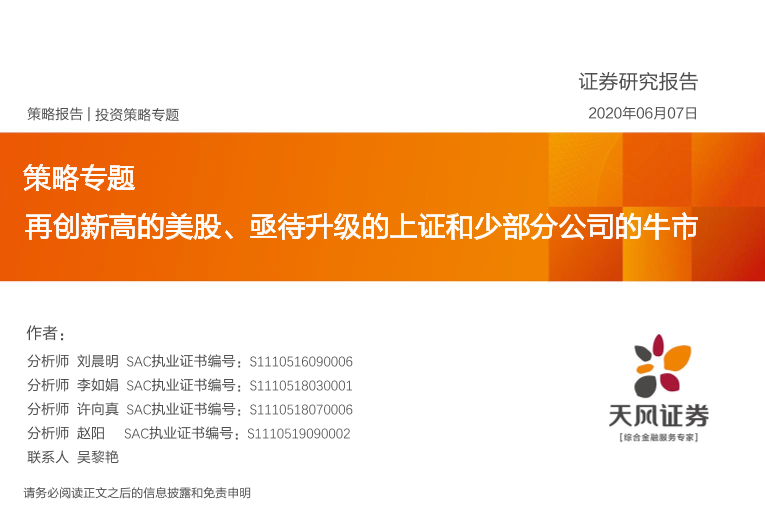 【天风证券】【20200607】策略专题:再创新高的美股、亟待升级的上证和少部分公司的牛市-34页