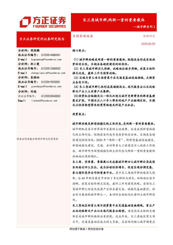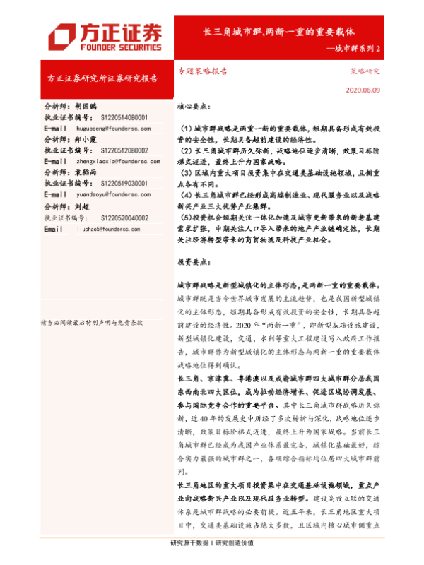【方正证券】【20200609】城市群系列2:长三角城市群,两新一重的重要载体-38页