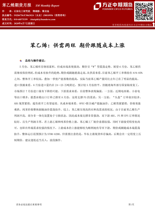 【方正中期期货】【20200607】苯乙烯期货月报-21页