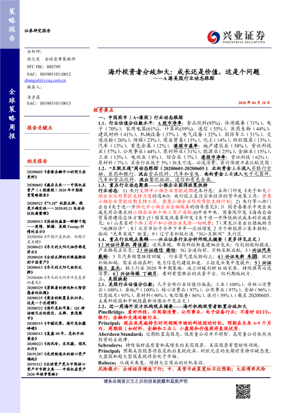 【兴业证券】【20200610】海外投资者分歧加大:成长还是价值,这是个问题——A港美股行业动态跟踪-32页