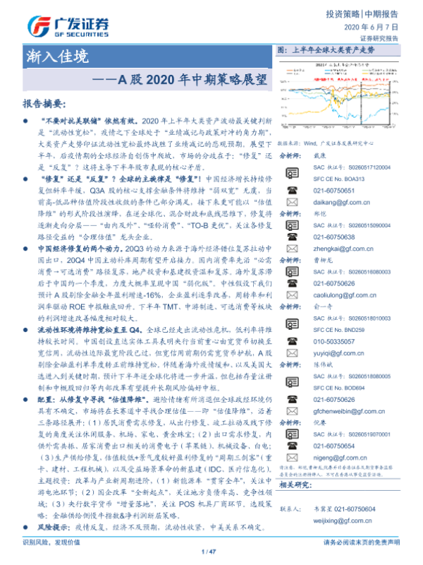 【广发证券】【20200607】A股2020年中期策略展望:渐入佳境-47页