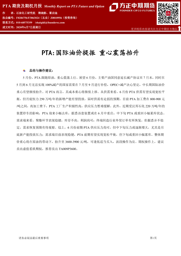 【方正中期期货】【20200607】PTA期货及期权月报-24页