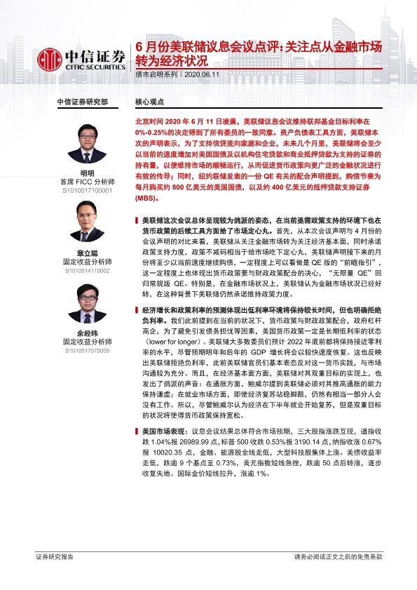 【中信证券】【20200611】6月份美联储议息会议点评:关注点从金融市场转为经济状况-24页