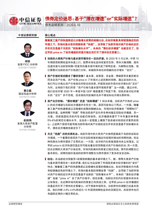 【中信证券】【20200610】债市启明系列:债券定价迷思,基于“潜在增速”or“实际增速”?-24页