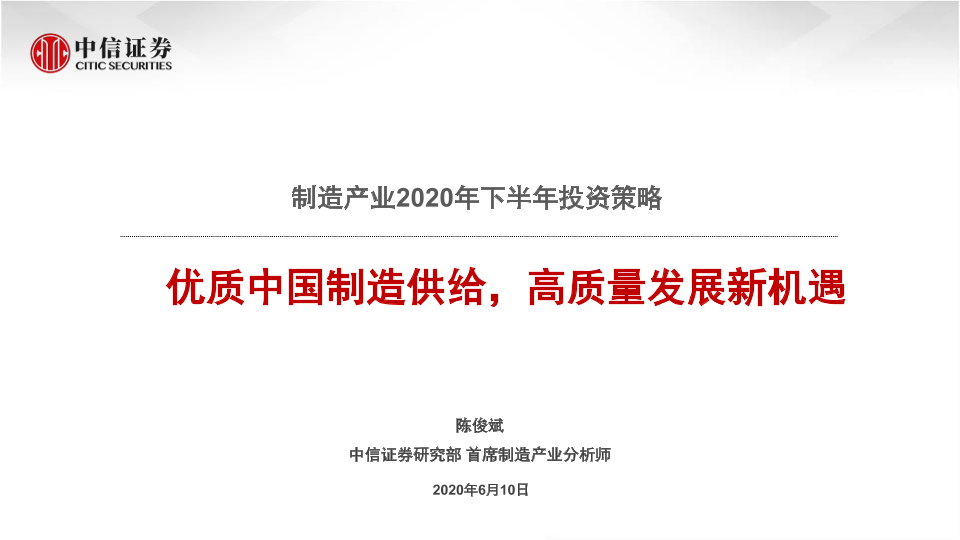 【中信证券】【20200610】制造产业2020年下半年投资策略:优质中国制造供给,高质量发展新机遇-17页