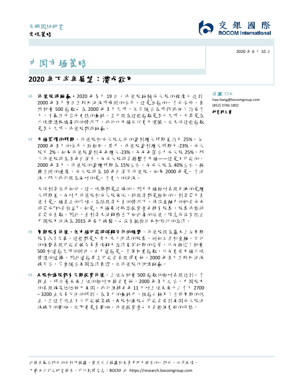 【交银国际】【20200610】中国市场策略:2020年下半年展望,潜龙欲用-12页