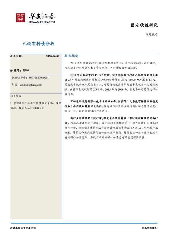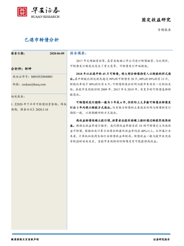 【华安证券】【20200609】专题报告:已退市转债分析-23页