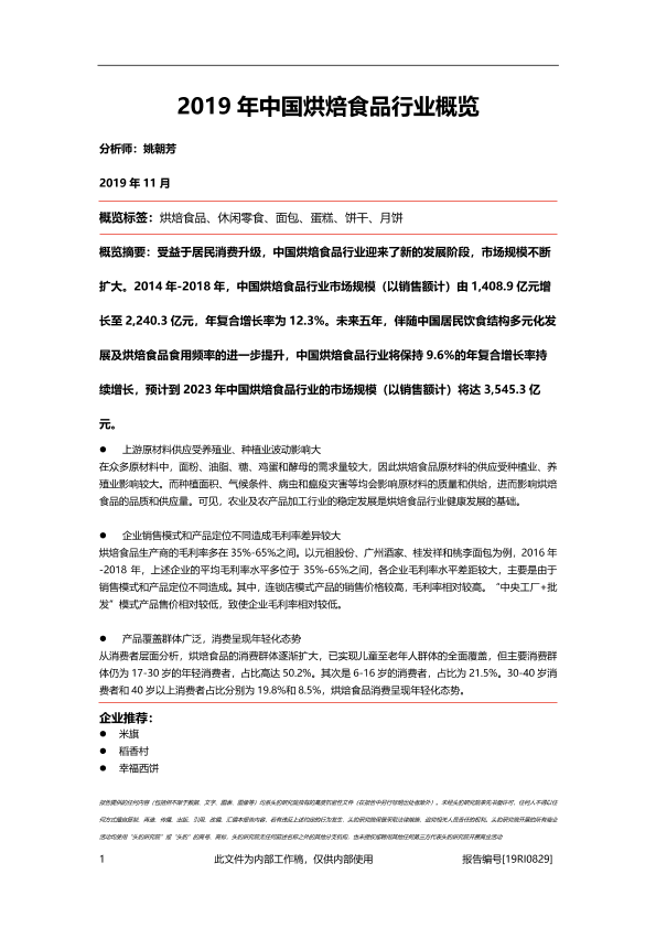 【头豹研究院】【201911】2019年中国烘焙食品行业概览-36页