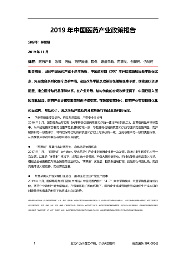 【头豹研究院】【201911】2019年中国医药产业政策报告-38页