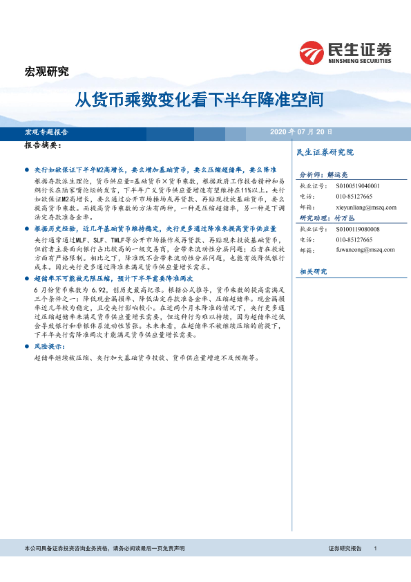 【民生证券】【20200720】从货币乘数变化看下半年降准空间-15页