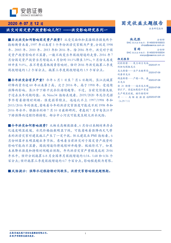 【安信证券】【20200712】洪灾影响研究系列一:洪灾对固定资产投资影响几何?-9页