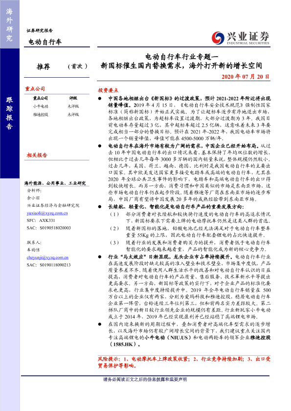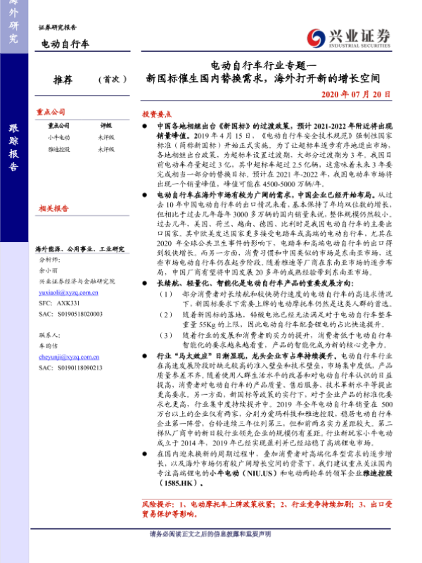 【兴业证券】【20200720】电动自行车行业专题一:新国标催生国内替换需求,海外打开新的增长空间-29页