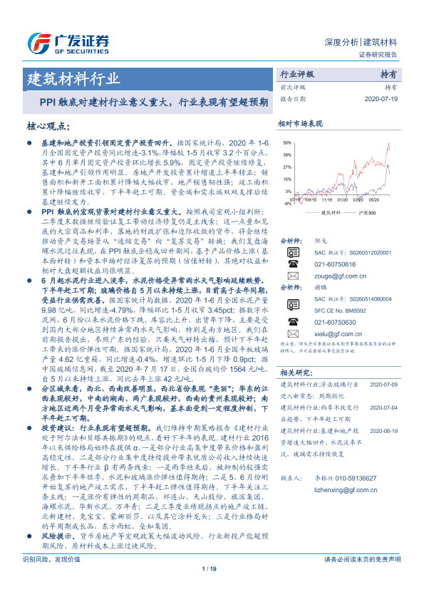 【广发证券】【20200719】建筑材料行业深度分析:PPI触底对建材行业意义重大,行业表现有望超预期-19页